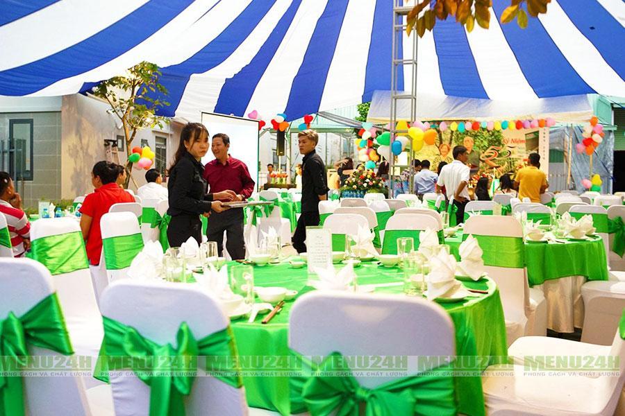 Không chỉ vậy, chúng tôi còn mang đến sự hoàn hảo trong từng bàn tiệc với cách setup bàn tiệc một cách khoa học. Bằng cách mang đến cho mỗi bàn tiệc một bình hoa tươi nhỏ, tạo nên sự lãng mạn, cùng với những chiếc áo ghế được lựa chọn với màu sắc nổi bật nhất,... Đảm bảo rằng, bạn chỉ có thể trải nghiệm những buổi tiệc tại nhà đặc biệt này khi đến với dịch vụ tổ chức tiệc tất niên chuyên nghiệp menu24h,...