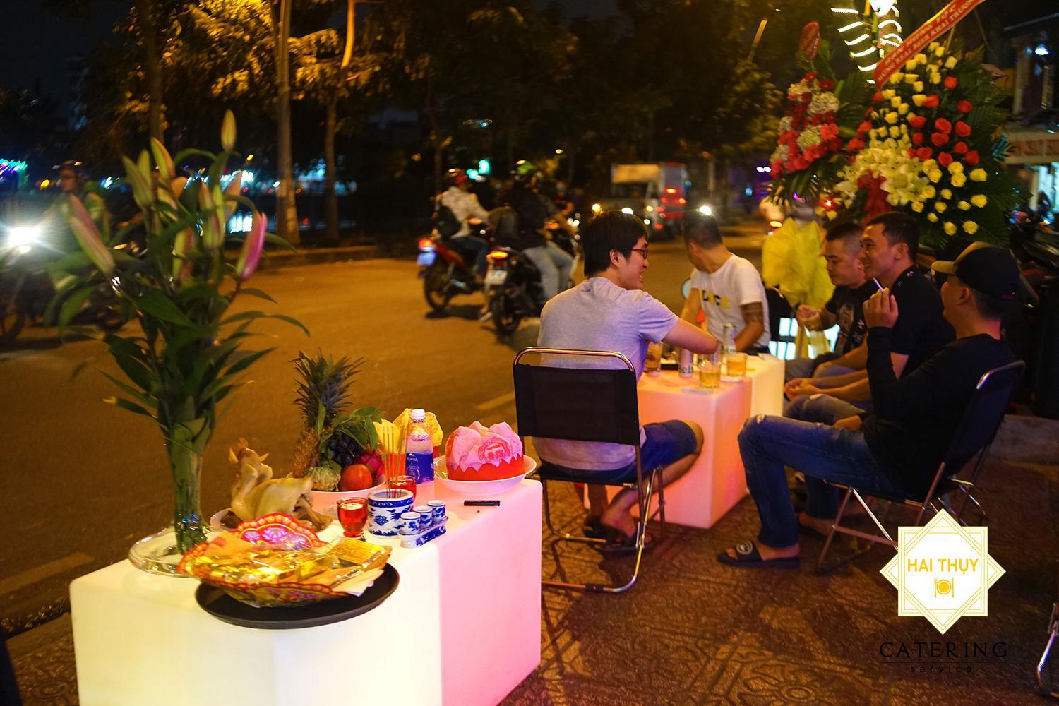 Với nhiệm vụ tổ chức tiệc buffet tại quán Beer Coffee, ngoài đem đến không gian sinh nhật ấn tượng. Hai Thụy Catering còn chu toàn ở sự kiện khai trương của gia chủ. Khi đặt tiệc khai trương thì không thể nào thể thiếu mâm cúng, đây là nghi lễ quan trọng nhất và không thể thực hiện qua loa, sơ xài. Mâm cúng của Beer Coffee có đầy đủ hoa quả, gà luộc, xôi, rượu trắng, hoa tươi,... Gia chủ cũng đã thực hiện xong nghi lễ cúng bái, thể hiện lòng thành kính cầu mong tổ tiên, thần linh phù trợ và giúp đỡ việc kinh doanh được thuận lợi và phát đạt.