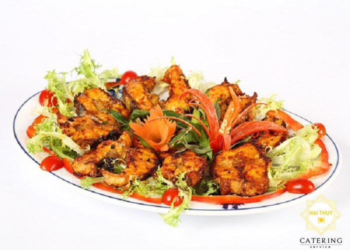 - Cá sau khi ướp xong đem nướng trên lửa than, trở qua trở lại cho cá chín vàng đều 2 mặt thì cho cá tiếp xúc trực tiếp với lửa than để da cá phồng rộp lên được.