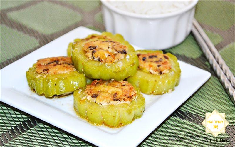 - Khổ qua: rửa sạch, cắt bỏ hai đầu, thái xéo dàv 3cm, bóc bỏ hột.