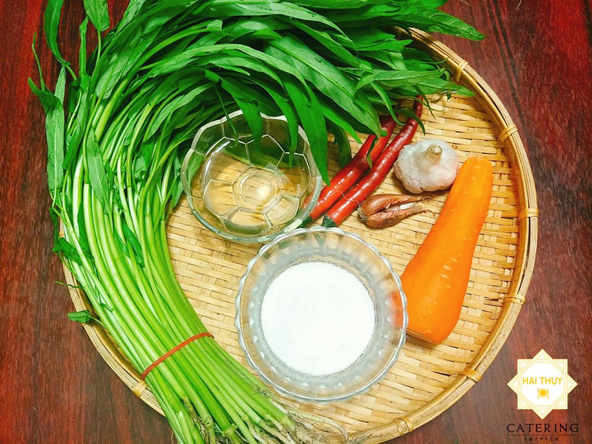 - Rau muống: bỏ lá, lấy cọng, cắt ngắn 6cm, rửa sạch, để ráo.