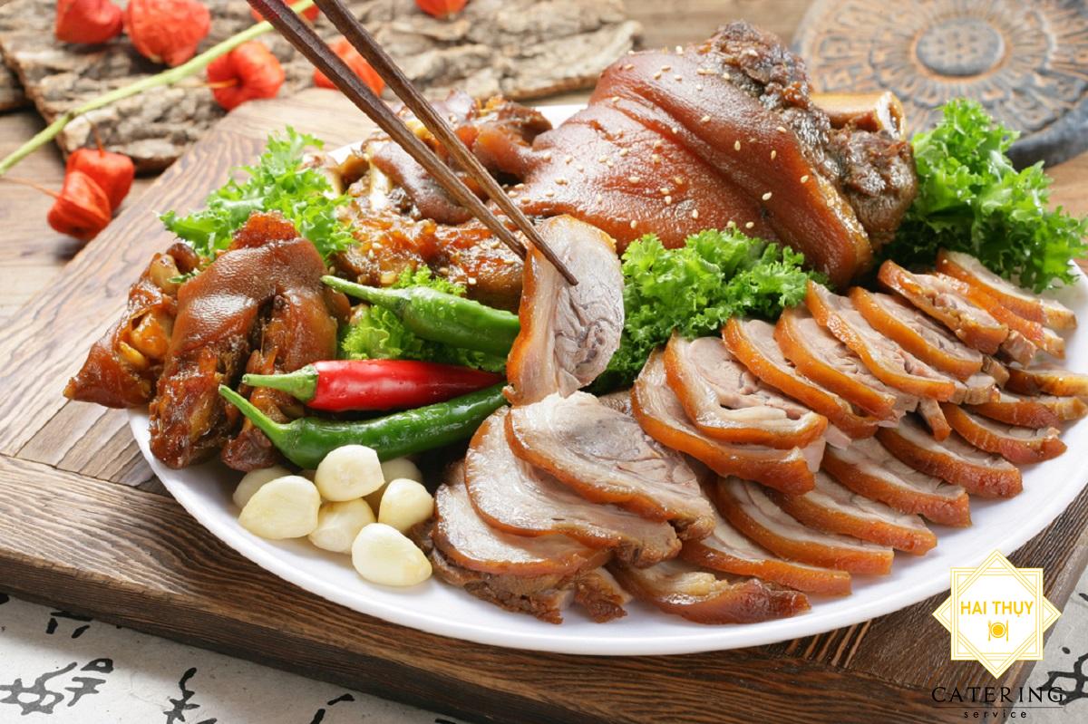 - Múc giò heo ra thố, rắc mè lên mặt.