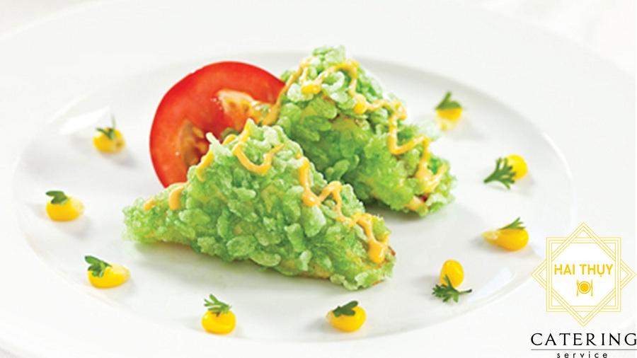 - Lăn từng viên cá qua cốm.