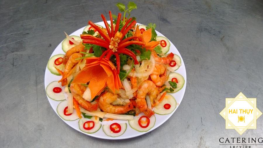 - Dưới từ từ 2/3 chỗ nước trộn gỏi trên vào trộn đều, để khoảng 5 phút cho ngấm. Sau đó cho tôm, thịt và chỗ nước trộn gỏi còn lại vào trộn cùng, nêm nếm lại cho vừa miệng