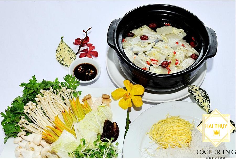 - Nước dùng sôi cho nấm vào nấu chín, nhúng thịt bò và rau. Lẩu nên dùng nóng.