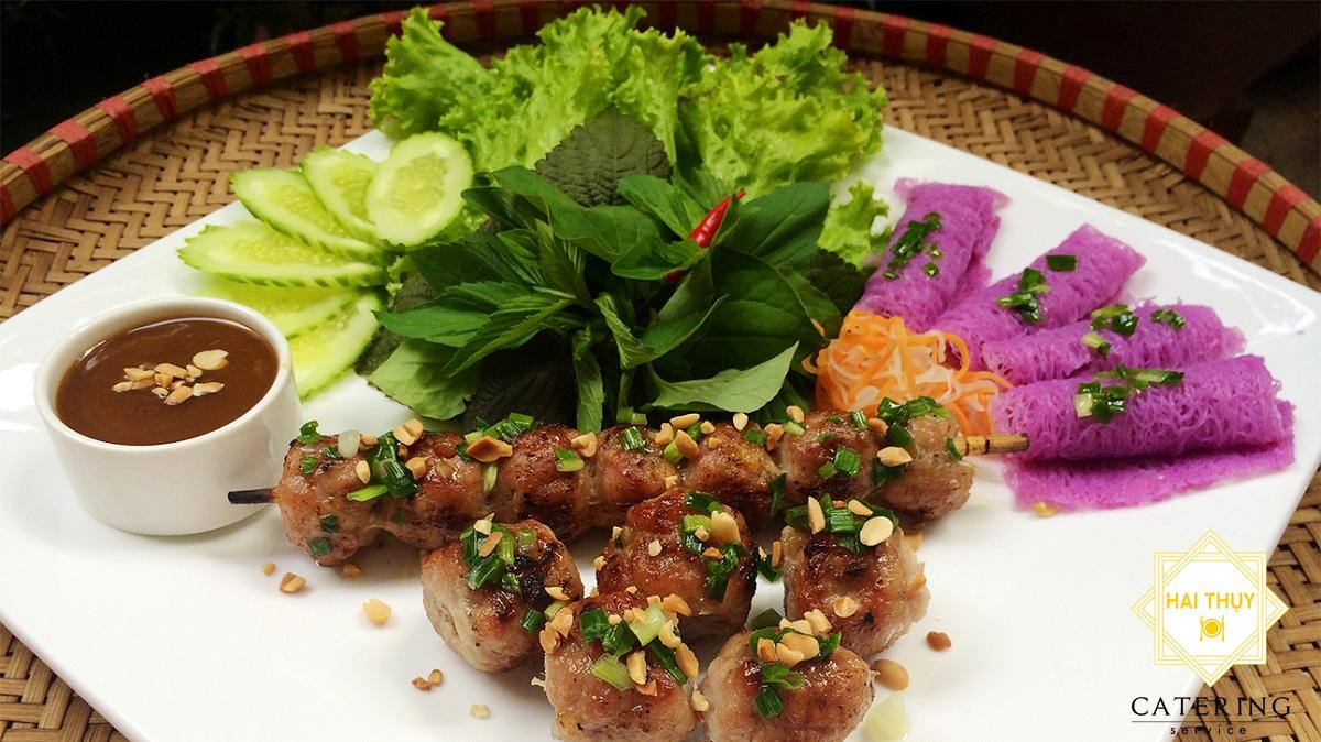 - Khi ăn nem nướng, ăn kèm với bánh hỏi, cùng các loại rau thơm, quả chua, chát.