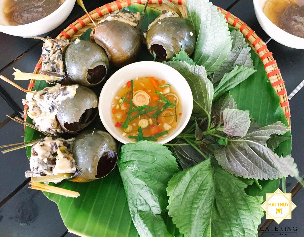 - Rau sống ăn kèm: 2 trái khế, 2 trái chuối và rau thơm, tía tô