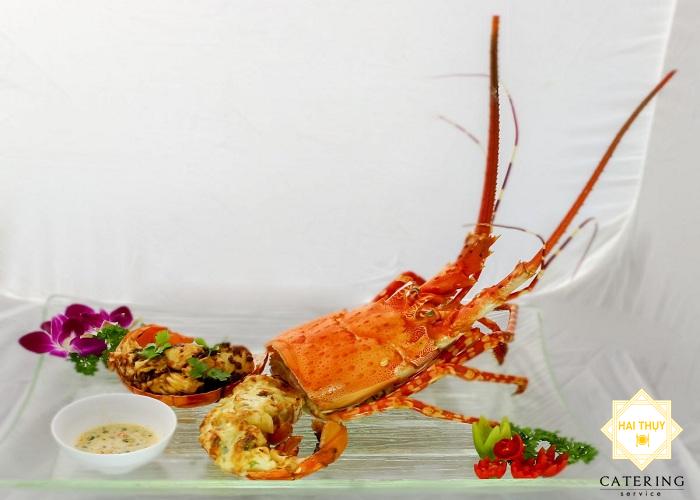 - Luộc tôm chín, chặt càng, đẩy lấy thịt ra. Dùng kéo cắt dọc vỏ tôm từ đầu đến đuôi, dùng dao chẻ đôi lấy gạch để riêng, gỡ thịt tôm ra khỏi vỏ, cắt đôi rồi cho vào vỏ tôm lại.