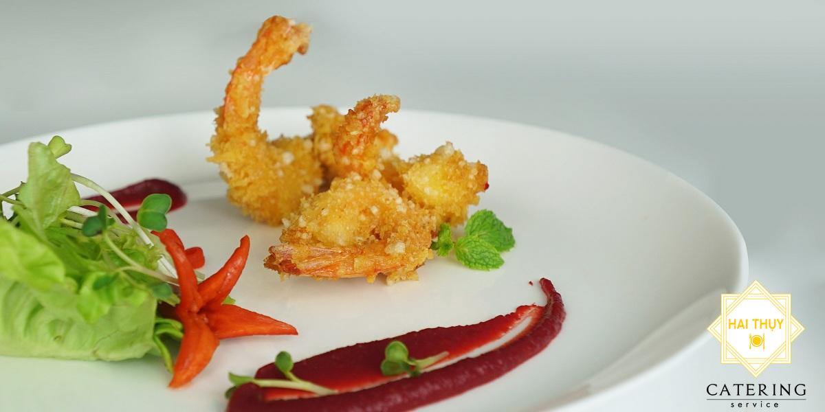- Xếp tôm ra dĩa, ăn kèm xốt pha và rau trộn dầu giấm.